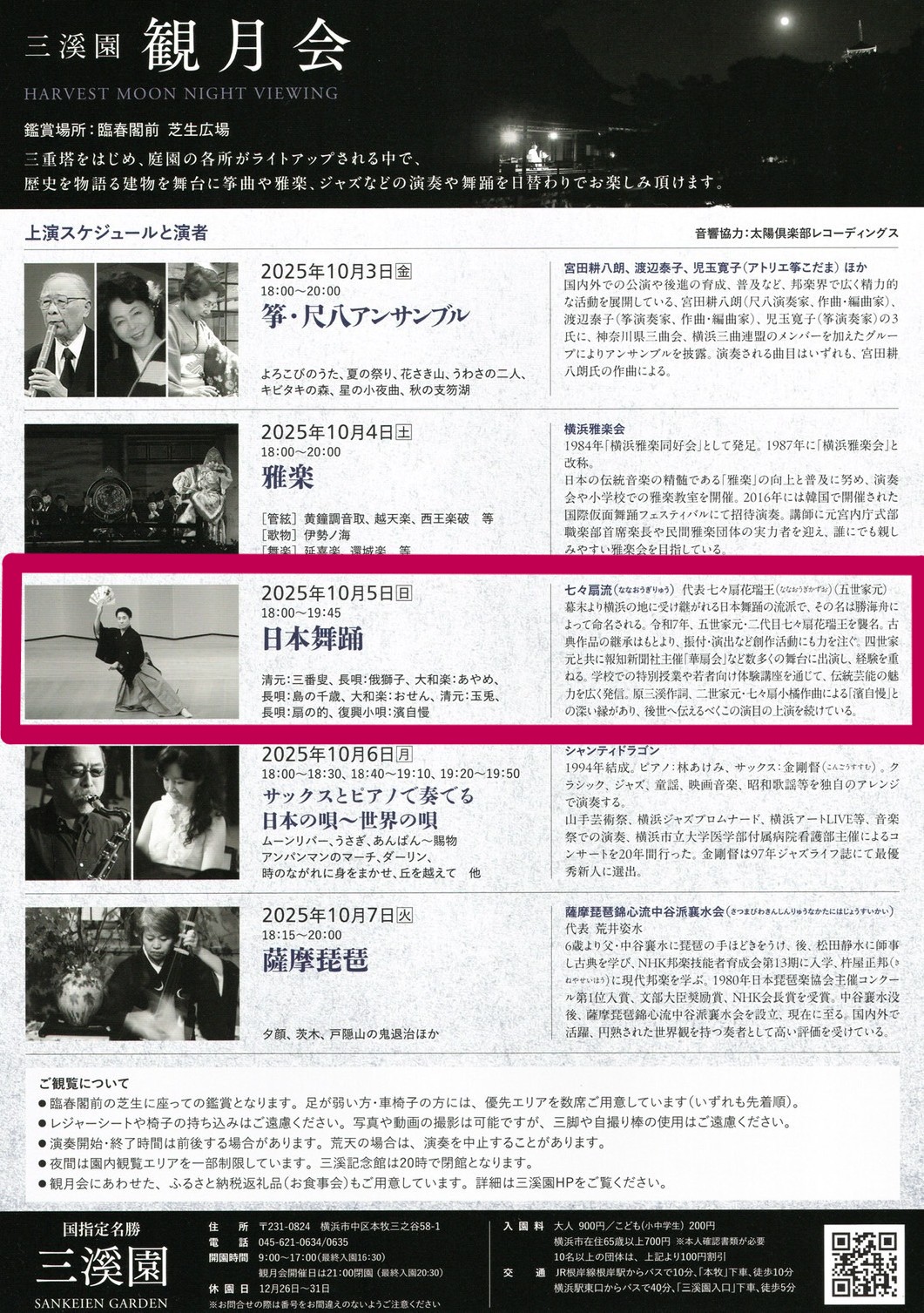 七々扇流日本舞踊出演のお知らせ|三渓園「観月会」